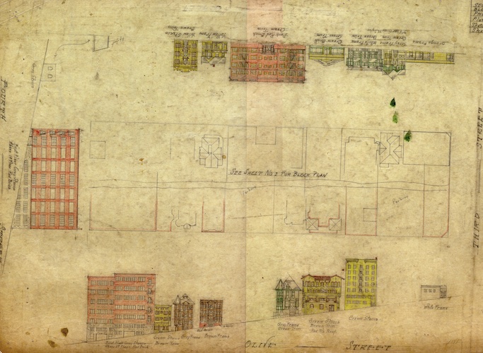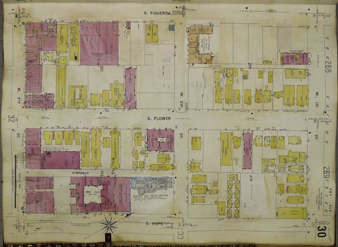 Archival sources (see images below) used to re-construct Bunker Hill included, among others: architectural drawings produced in 1939 by WPA artists and held at the Los Angeles City Archives; an architectural model on display at the Natural History Museum of Los Angeles County; Sanborn maps from the Library of Congress; historical photographs from the period accessed primarily from the Huntington Library, Los Angeles Public Library, the Getty, and USC Libraries Special Collections; and aerial photography from 1941, housed at UC Santa Barbara’s Aerial Photography Collection.
